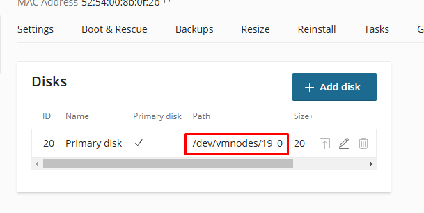 Untuk target disknya sesuaikan dengan disk pada mesin vps yang ada di node baru, caranya lihat pada bagian disk seperti gambar dibwah ini (dalam kotak merah)